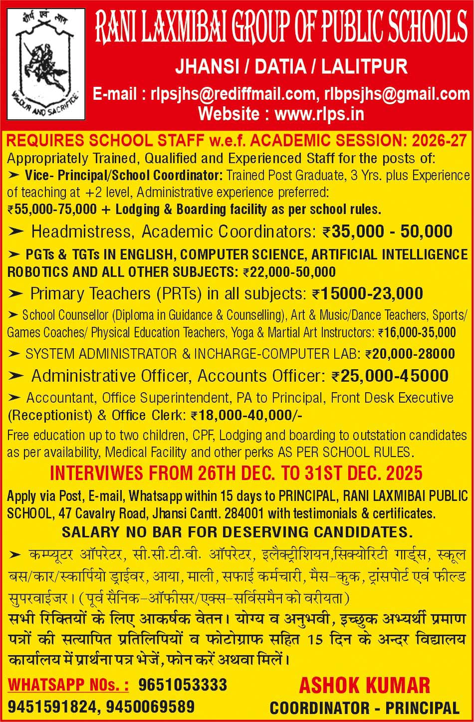 The trust has substantially catered to the above-mentioned needs of our age and their tireless efforts are being well reached with. By establishing the group of public schools Rani Laxmibai Public School (Jhansi), Rani Laxmibai Public School (Datia) and Rani Laxmibai Public School (Lalitpur) the trust has shown its commitment to the cause of bettering education, and thus ensuring golden future for the generations to come.
